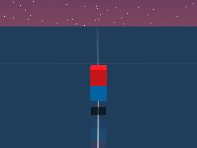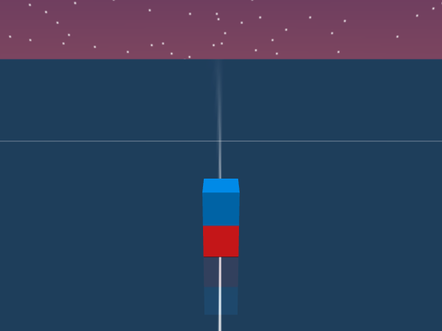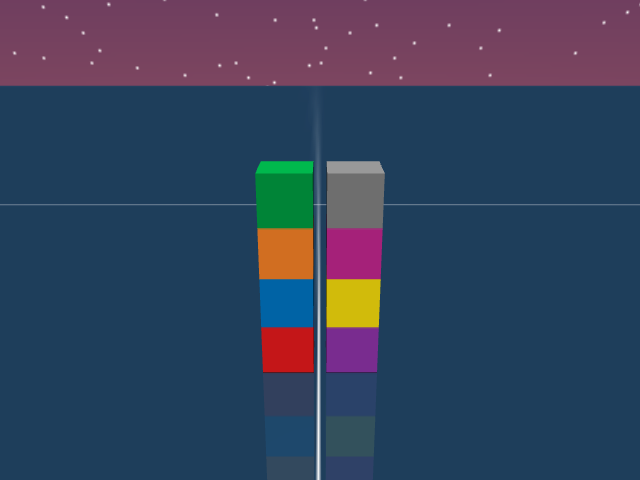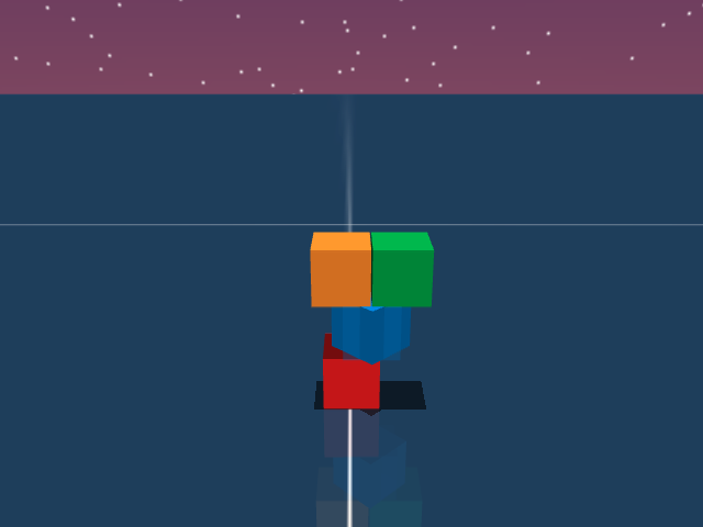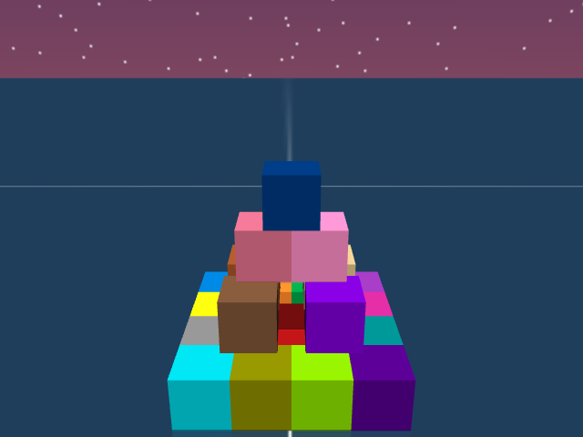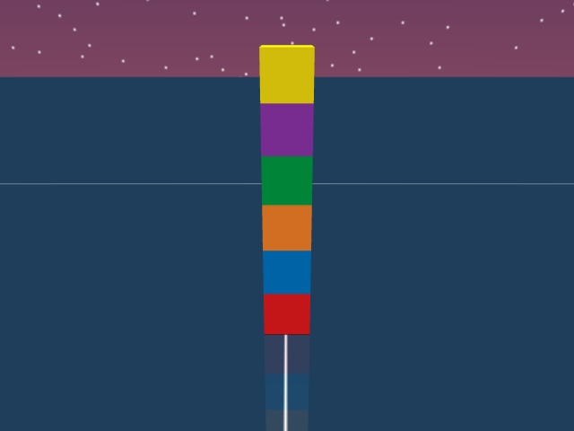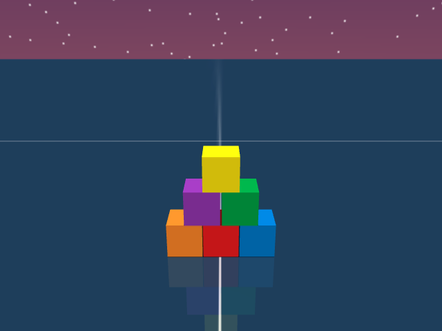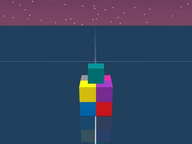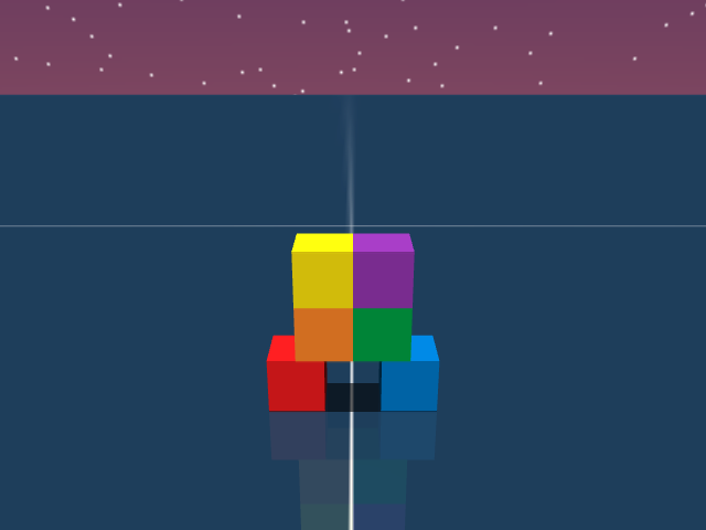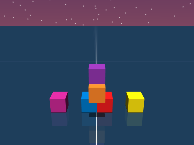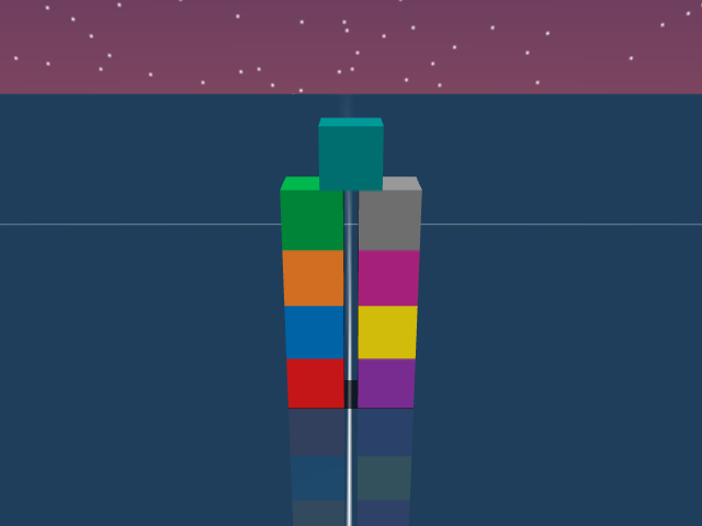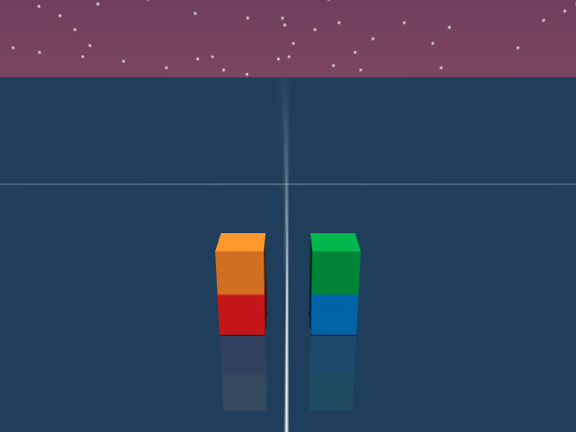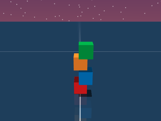 As visualized in the figure, the goal of this agent is to stack three blocks in a T-shaped block in a stable manner. The agent in this case tries to naively stack blocks, but does not realize that the naive configuration is never going to be stable. This is a particularly compelling example of a task where playful interaction might stumble on the true solution. The red block can be rotated by 45 degrees to increase the surface area of supporting both blocks simultaneously.